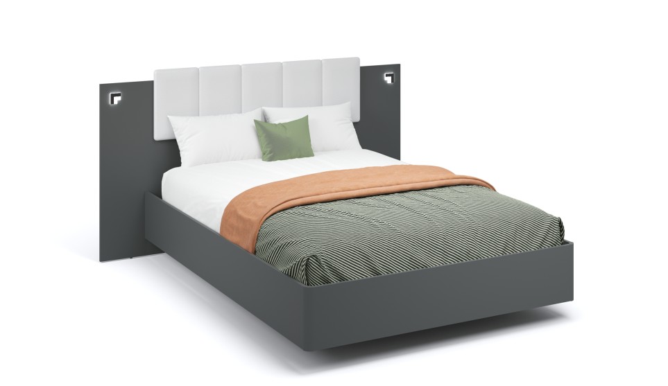 «Мишель» – это современная кровать в актуальных природных цветах с оригинальной конструкцией основания, которое в сочетании с подсветкой создает «эффект парения». Накладные светильники в комбинированном изголовье и подсветка по его периметру дают дополнительное освещение в ночное время, а мягкая накладка с вертикальной отстрочкой комфортно поддерживает спину во время отдыха.