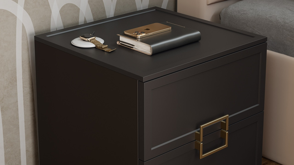 • Декор. Отсутствие пестрых расцветок и организация небольшого контраста, в виде сочетания фасадов с золотыми металлическими ручками, помогают создать гармоничный и современный образ спальни, который будет сочетаться с любым интерьером. Важной особенностью набора является геометрическая фрезеровка на фасадах и крышках тумб, комодов, где визуальный объем и глубину рисунка подчеркивает матовая структура, которая отлично сочетается с однотонными декорами. Такая обработка прекрасно дополнит образ коллекции, превращая её в единое целое.