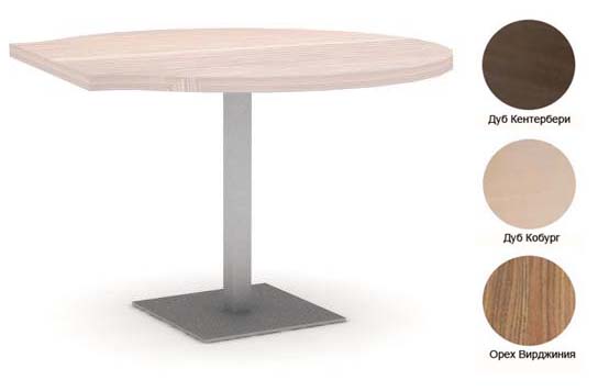 Комплектуется квадратной металлической опорой, столешница - ЛДСП 38 мм. Выполняется в цвете: Дуб Кобург, Орех Вирджиния, Дуб Кентербери.