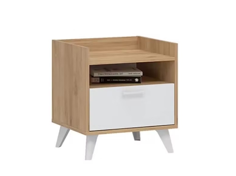 Тумба прикроватная Ирис ТБ-01 стильное решение для современного интерьера. Белоснежный фасад с корпусом древесного оттенка создаёт интересное сочетание.