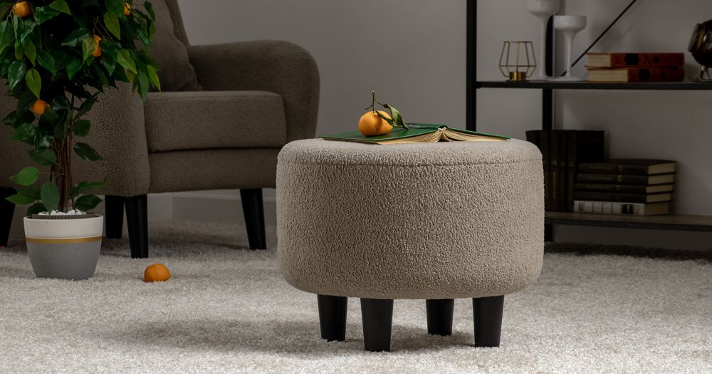 Пуф Шон выполнен в современном стиле. Пуф имеет мягкую, округлую форму. Может использоваться как дополнительное сиденье или подставка для ног. Универсальный предмет мебели, который можно использовать в прихожей, спальне, гостиной, детской и любом другом помещении. Ткань букле делает кресло особенно уютным и мягким.