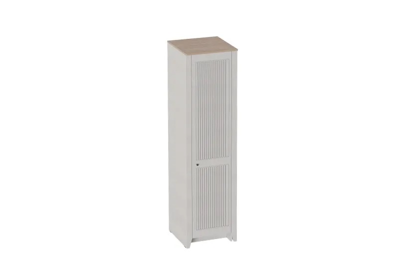 Шкаф 1 дверный Валенсия с зеркалом выполнен из (ЛДСП) в комбинации Дуб натуральный светлый / Персидский жемчуг.