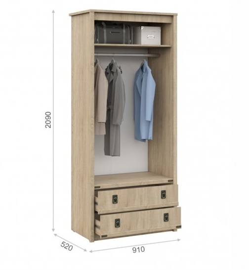 Шкаф - универсальное решение для хранения вещей. Две открытые полки подходят для книг и учебников, декоративных предметов. Декоративные накладки и профиль из МДФ по вертикальным краям закрывают острые края корпуса и придают шкафу более эффектный и надежной вид. Стилизованные металлические ручки MARINE бронзового цвета и декоративные элементы в тон – это изюминка шкафа Валенсия. Идеально компонуется со всеми модулями системы Валенсия.