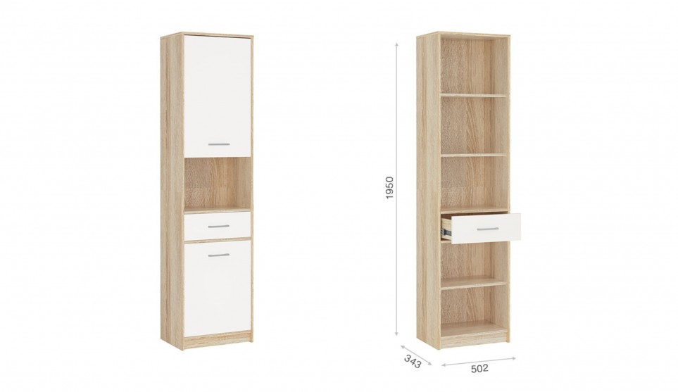 Пенал служит для хранения учебников, тетрадей и других письменных принадлежностей. В нем достаточно места, чтобы хранить не только предметы для учебы, но и одежду. Выдвижной ящик – отличное место для нужных мелочей, а в открытой полке можно поместить предметы декора или фоторамки.