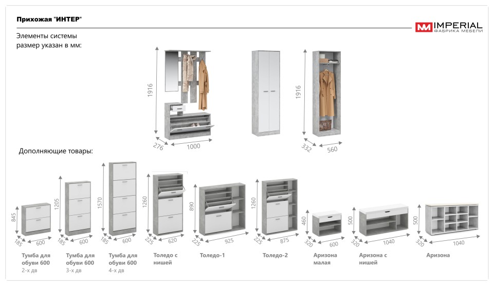 Шкаф «Интер» - это удобное и функциональное место для хранения верхней одежды, обуви, сумок. Выполнен в стиле минимализм: простота, строгая геометрия, отсутствие декора. Благодаря классической нейтральной цветовой гамме гармонично впишется в любой интерьер.