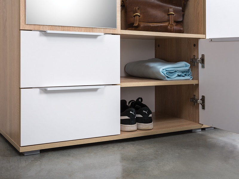 Наполнение: 4 закрытые полки, 1 открытая полка, 2 ящика, 4 двойных крючка.