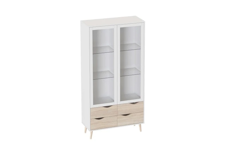 Шкаф-витрина "Соната" будет одинаково гармонично смотреться как в составе мебельной композиции, так и установленный отдельно. Распашные дверцы со стеклами и белоснежнымы фасадами из ЛДСП защитит коллекционный фарфор, декоративную посуду или книги от пыли, обеспечивая при этом прекрасный обзор всего содержимого полок. В нижней секции, оборудованной четырмя выдвижными ящиками с фасадами, декорированными прорезными ручками, можно хранить предметы, имеющие более утилитарное назначение.