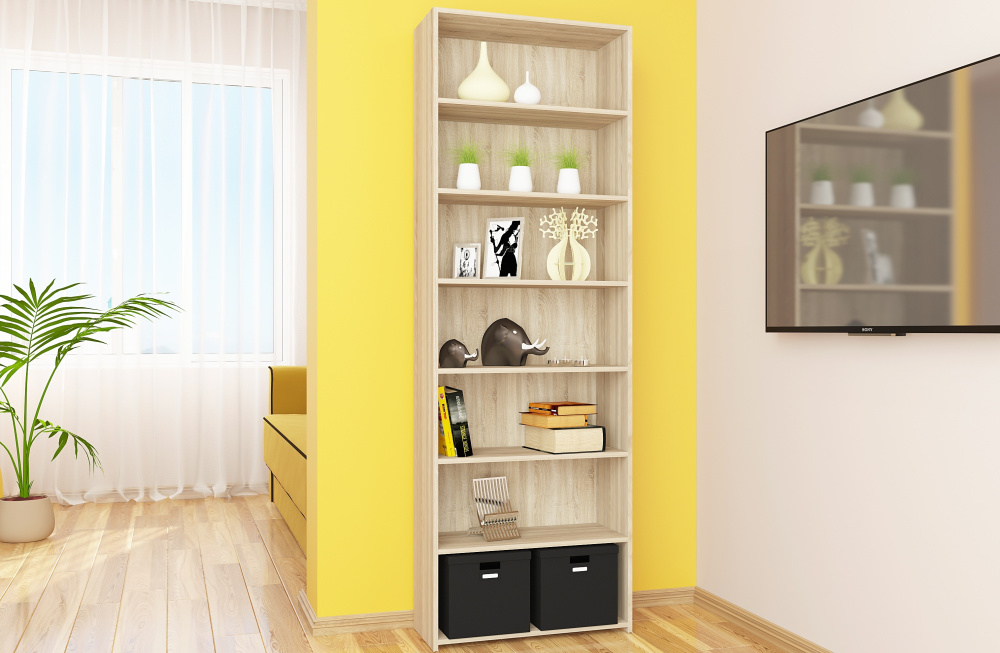 Стеллаж №5 за счет «теплой» цветовой гаммы идеально подойдет для небольшой уютной гостиной или спальни. Практичность и функциональность его дизайна по достоинству оценят поклонники классического стиля в интерьере.