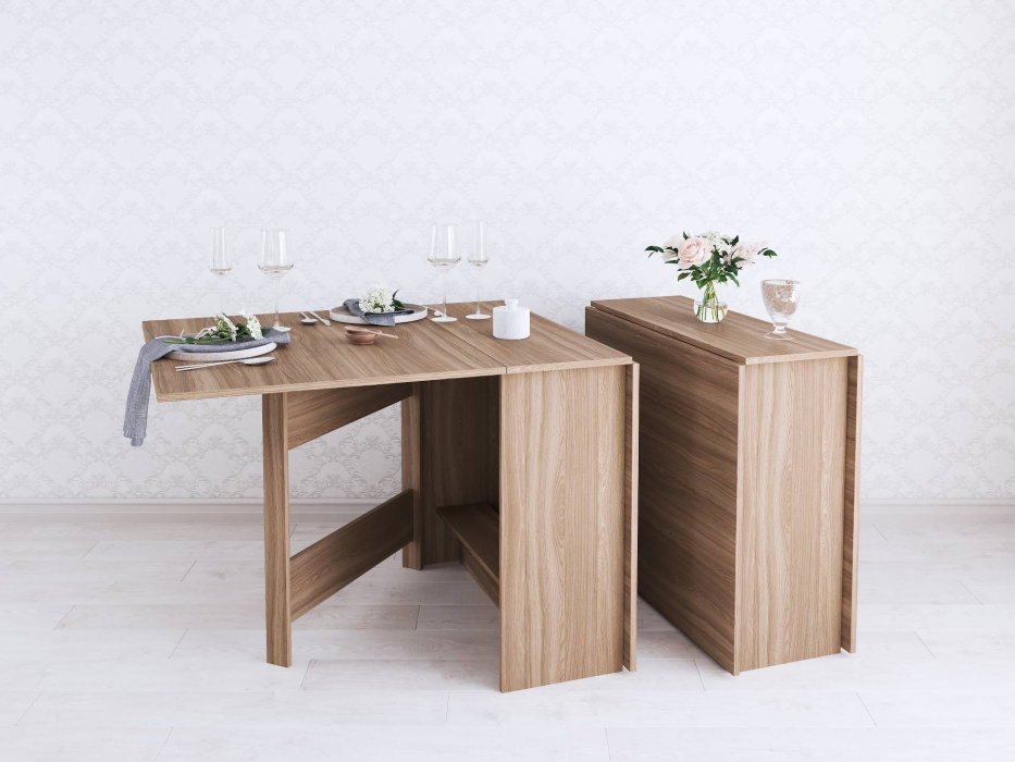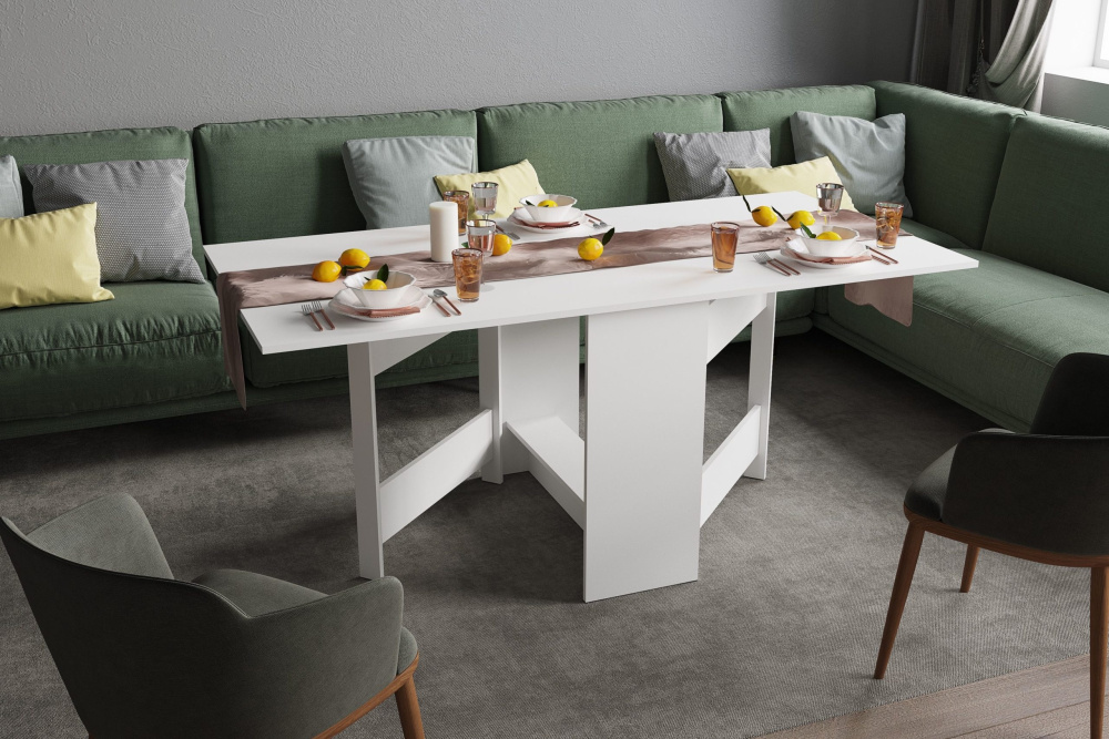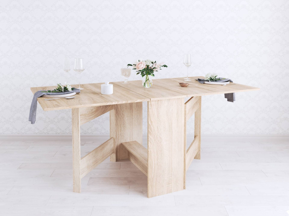 — Стол имеет 3 положения: полностью сложенный, разложенный наполовину или полностью разложенный