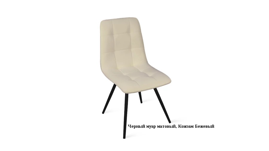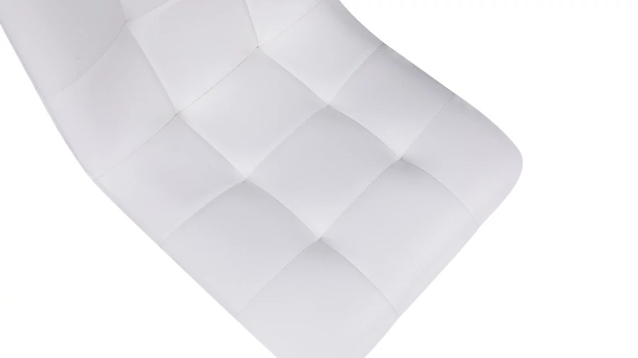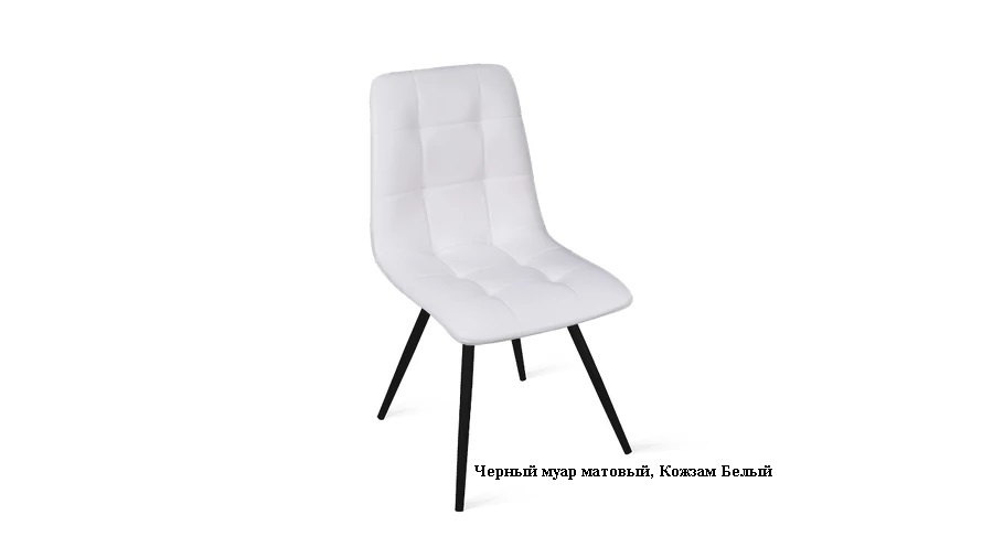 Материал исполнения. Обивка изготовлена из кожзама, что придает стулу привлекательный внешний вид. Это современный полиуретановый материал, очень схожий по фактуре и внешнему виду с натуральной кожей. Отстрочка на мягком элементе в виде квадратов — это именно то, что нужно для создания стильного интерьера. Металлические ножки с порошковым покрытием обеспечивают надежную опору модели. Они расставлены под углом, что гарантирует максимальную устойчивость конструкции. Каркас окрашен в цвета «Белый муар» и «Черный муар матовый», которые сейчас очень популярны. На ножках предусмотрены пластиковые заглушки, которые придают стулу дополнительную устойчивость и защищают пол от царапин.