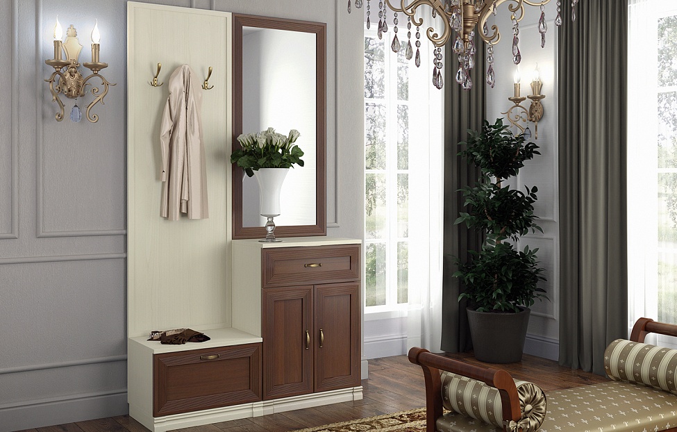 В комплект входят навесы для крепления к стене, крючки для одежды из латуни