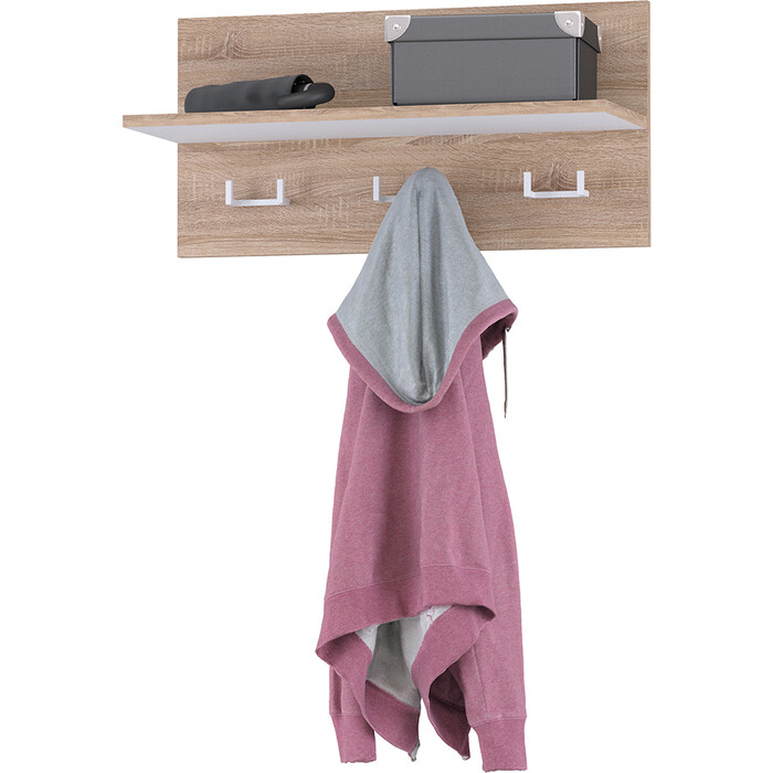 Настенная вешалка Куба — удобное решение для небольшой, но уютной прихожей. Практичные крючки с легкостью разместят верхнюю одежду, а полочка прекрасно справится с хранением головных уборов и других аксессуаров.