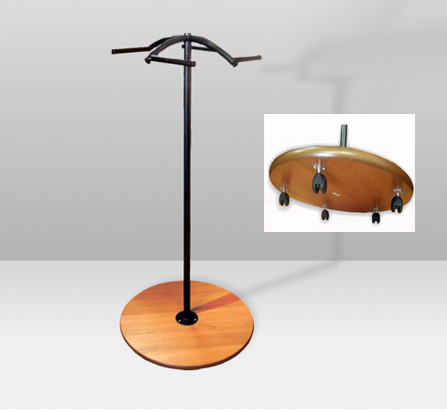 - Пять колесных опор на основании позволяют легко перемещать вешалку;