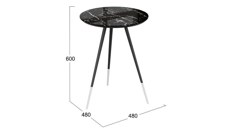Декор. Столик имеет круглую форму столешницы, что делает его компактным и удобным для использования. На стеклянную поверхность нанесен рисунок, имитирующий мрамор, а глянец столешницы прекрасно отражает солнечные лучи. За счет классического сочетания черного и белого цвета, декор опоры выглядит по-настоящему стильно и оригинально и идеально гармонирует со столешницей.