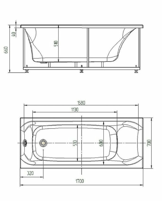 Ванна акриловая Aquatek "Афродита 170Х70" без гидромассажа с фронтальной панелью