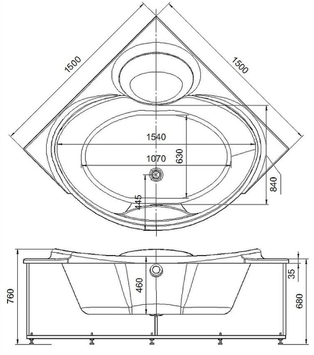 Ванна акриловая Aquatek "Эпсилон 150Х150" без гидромассажа