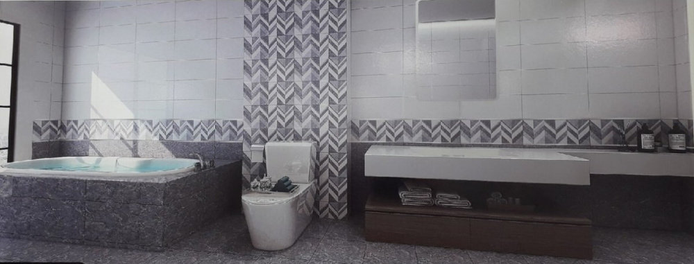 Плитка обладает блестящей глянцевой поверхностью, благодаря чему она эффектно смотрится и ее легко очищать.