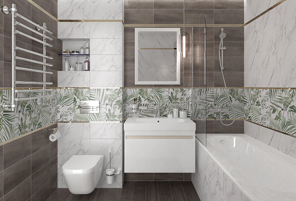 Одна коллекция, но с ее помощью можно создать такие разные интерьеры! Это, несомненно, настоящая победа наших дизайнеров: три очень далеких друг от друга, на первый взгляд, декора смотрятся вместе абсолютно органично. В целом, коллекция держится в тренде - природные мотивы, естественные фактуры и пастельные тона. Но интерьер получится запоминающимся! Именно в такой ванной вы захотите смыть с себя весь негатив, стресс и усталость, а время, проведенное в ней, станет по-настоящему личным. Добавьте сюда керамогранит под дерево из других наших коллекций, используйте для обрамления изящные металлические бордюры, и вы получите неповторимый результат!