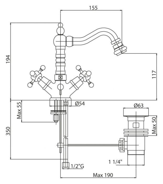 • Оснащение: донный клапан, аэратор