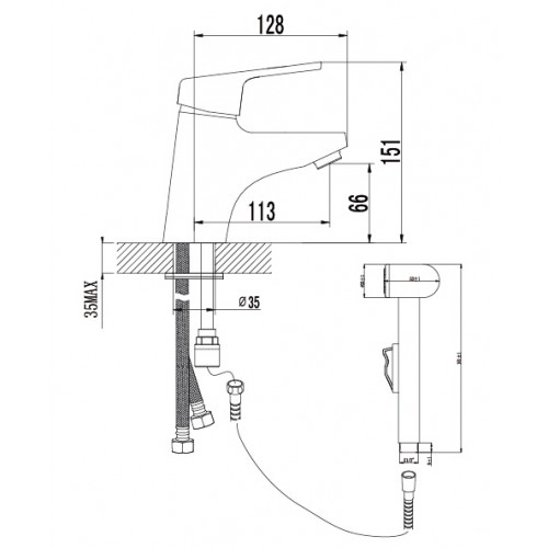 Эко-картридж Sedal 40 мм. Аксессуары в комплекте (шланг 1,5 м., настенное крепление для лейки, лейка для биде с кнопочным приводом) Аэратор NEOPERL-CASCADE Металлическая рукоятка