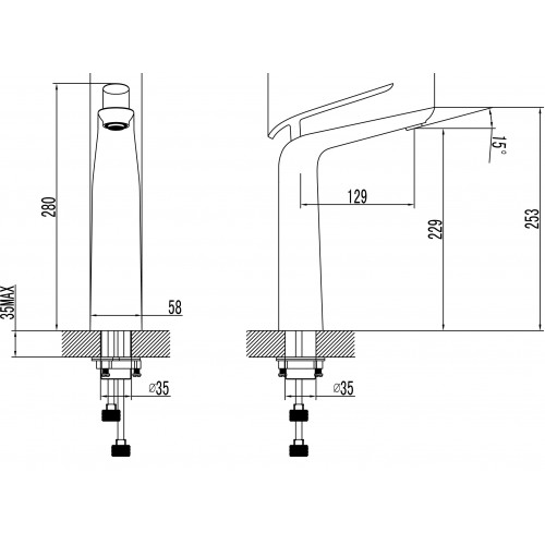 Скрытый аэратор NEOPERL SLIM SSR с изменяемым углом подачи воды Керамический картридж 35 мм Гибкая подводка 1/2 60 см Металлическая рукоятка