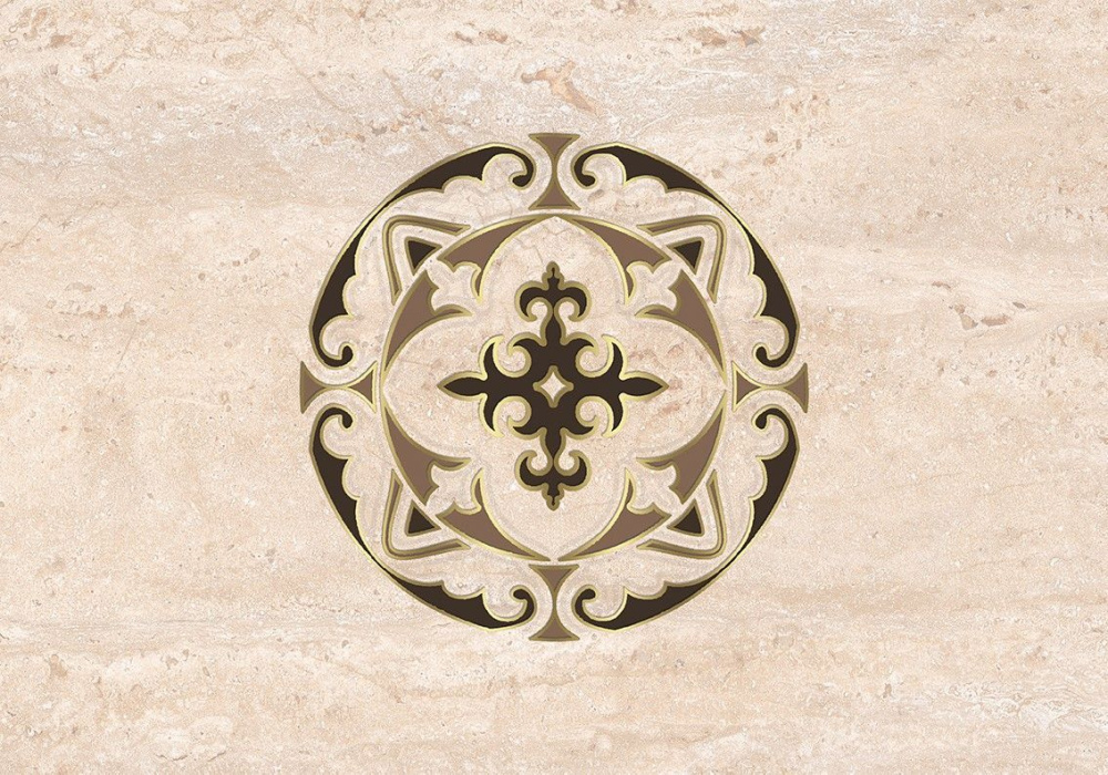 Поверхность имеет рисунок под камень, под травертин, с орнаментом, цветочный орнамент. Эта плитка применяется для декорирования стен внутренних помещений: ванной, туалета.