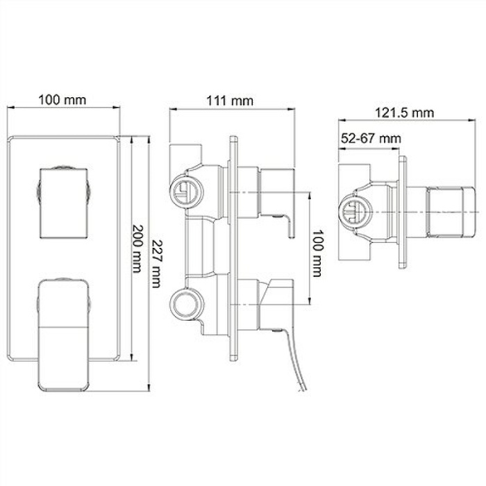 • Смеситель на 1 выход: подключается к трем аксессуарам для душа: верхней душевой насадке, лейке для душа и настенному изливу.
