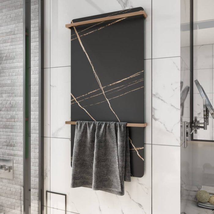 Креативность и элегантность Black & White не обошла и электрические полотенцесушители. Вам нужно быстро просушить вещи? B&W позаботиться об этом, пока Вы будете заняты другими делами. Добавьте в свою ванную комнату элемент роскоши, установив электрический полотенцесушитель, основой которого станет современный материал с имитацией натурального мрамора. А благодаря нагревательному элементу нового поколения из карбона Вы можете быть абсолютно уверены в безопасности изделия.