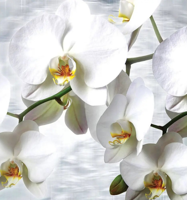 Фотообои на бумажной подложке (3.68х2.54 м, 4 части) от торговой марки For Wall — оригинальное решение для интерьера в стиле эко, лофт, минимализм, эклектика. При их изготовлении использовано двухслойное бумажное полотно, плотность которого позволяет замаскировать незначительные изъяны стен. Экологичный и дышащий материал отличается долговечностью, устойчивостью к ультрафиолету, колебаниям влажности и температуры. При нанесении на него изображения использованы современные технологии печати и экологичные краски. Нежный рисунок в виде ветви орхидеи поддержит изысканную, гармоничную атмосферу в комнате.