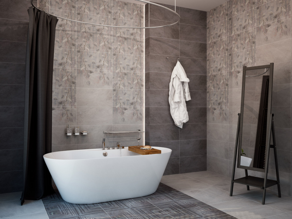 Романтичная коллекция Jolie, в которой «оживают» тонкие ветки берез, подчеркнутые нанесением золота, дарит ощущение света от проникающих сквозь ниспадающую листву нежных солнечных лучей. Два вида декоров – напольная вставка с геометрическим рисунком и три настенных, которые стыкуются по вертикали в бесконечное панно. С помощью специального заканчивающего декора можно делать эффектную каскадную выклейку.