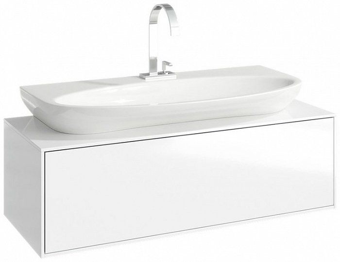 - Тумба оборудована ящиком полного выдвижения LegraBox с инновационной системой Tip-On Blumotio