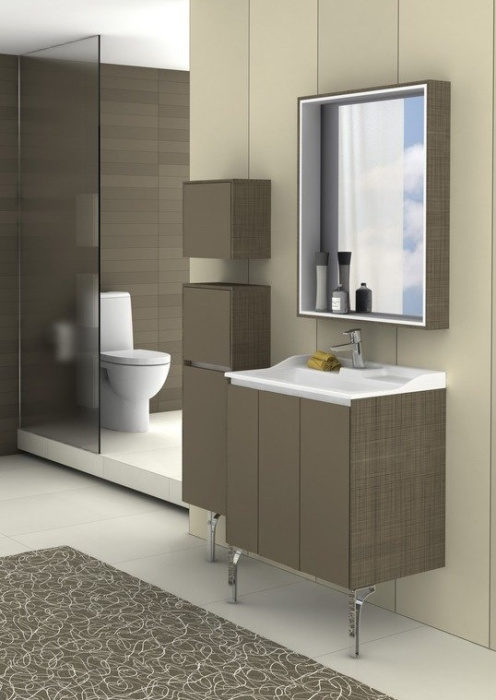 Это функциональная модель, выпускаемая в широкой цветовой гамме с раковинами из литого мрамора производства АКВАТОН. Изящные формы раковины, пристенные бортики и площадки делают ее очень удобной даже в небольших размерах. За левым фасадом встроен небольшой скрытый ящик. Корпус зеркала, так же как и корпуса остальных изделий коллекции, имеет двойную конструкцию. Зеркало оснащено подсветкой. Светильник итальянского производства снабжен сенсорным выключателем, встроенным под стекло, закрывающее светящуюся LED-ленту и имеющее специальное матовое покрытие, обеспечивающее равномерное свечение. Дополнительные системы хранения – шкафы различной конфигурации, которые можно компоновать по своему желанию. Опционально (отдельной позицией) для тумбы и полуколонны можно приобрести комплект глянцевых хромированных мебельных опор итальянского производства (h=220 мм). Внутренняя отделка всех изделий коллекции – декоративная текстурированная ДСП. Вместо ручки установлен изящный профиль, который позволяет открыть фасад.
