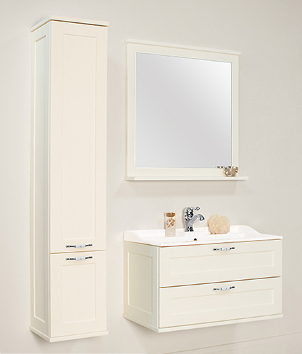 Коллекция Леон создана специально для любителей классического дизайна, предпочитающих современные материалы. Мебель отделана пленкой с фактурой под натуральное дерево, а раковина, изготовленная из литого мрамора, имеет изящные формы, пристенные бортики и площадки, которые делают ее очень удобной. В тумбе установлены 2 ящика, и помимо стандартного подключения водоснабжения и канализации (из стены) предусмотрена возможность подключения труб снизу. На изящной полочке зеркала можно разместить мелочи, которые всегда должны быть под рукой. В нижней части колонны установлена бельевая корзина, а в верхней - полки.