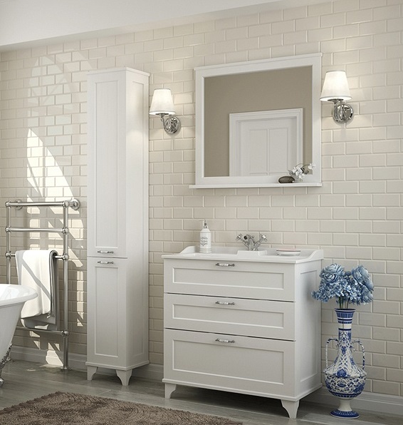 Модель ЛЕОН доступна и в напольном исполнении. Тумба дополнительно снабжена надежными мебельными навесами. В тумбе установлены 3 ящика, и, помимо стандартного подключения водоснабжения и канализации (из стены), предусмотрена возможность подключения труб снизу. Тумба комплектуется раковиной из литого мрамора собственного производства АКВАТОН. Изящные формы, пристенные бортики и площадки делают ее очень удобной. На изящной полочке зеркала можно разместить мелочи, которые всегда должны быть под рукой.