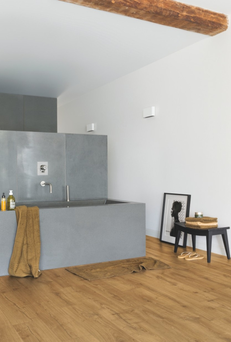 Попрощайтесь с проблемами залива водой, выбрав водостойкий пол Quick-Step. Эти полы имеют исключительно стильный и естественный вид, а также на 100% устойчивы к влаге, поэтому их очень легко чистить!