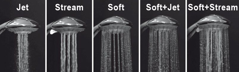 5 функций потока воды: Jet, Stream, Soft, Soft+Jet, Soft+Stream