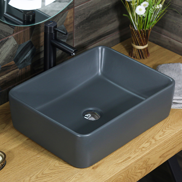 Раковина накладная MELANA MLN-320324MDG матовая темно-серая 485Х370Х130