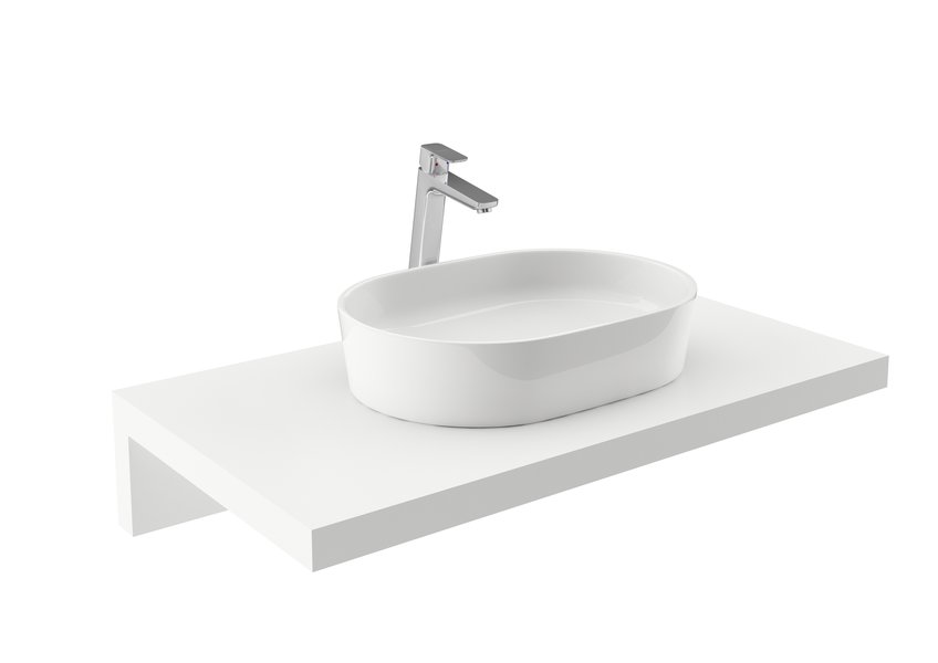 Авторский умывальник изготовленный из литого мрамора, дизайн которого основан на элементарной геометрической форме круга, который дизайнер трансформировал в практичный овал. Комфортная ширина для каждодневного использования. Идеально сбалансирует в ванной комнате элементы прямоугольной формы плитки, душевого уголка или мебели. Предназначен для установки на столешницу.