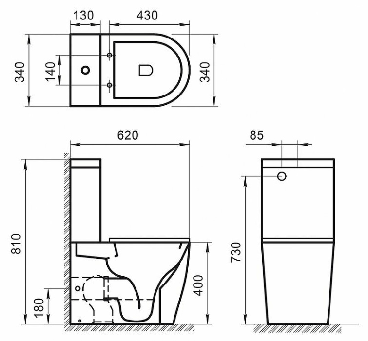 Унитаз напольный BelBagno "Sfera-TR" без бачка и сиденья 340Х620Х810