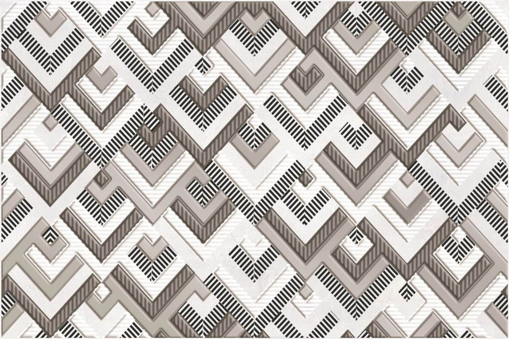 Поверхность имеет рисунок с орнаментом, геометрический узор. Эта плитка применяется для декорирования стен внутренних помещений: ванной, туалета.