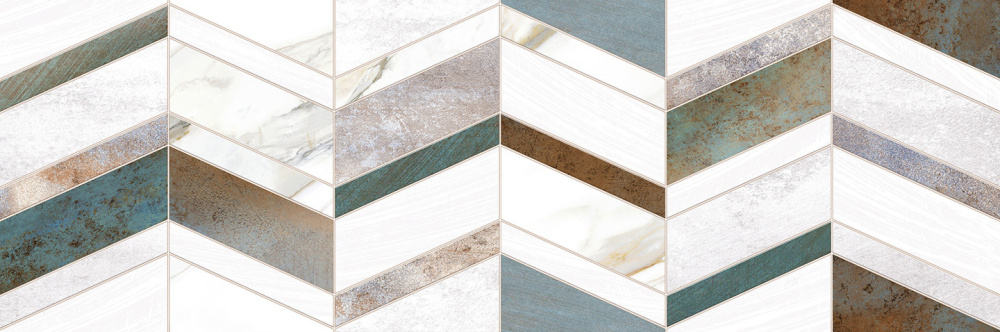 Глянцевая поверхность имеет рисунок под мрамор, с орнаментом, геометрический узор. Эта плитка применяется для облицовки стен внутренних помещений: ванной, туалета.