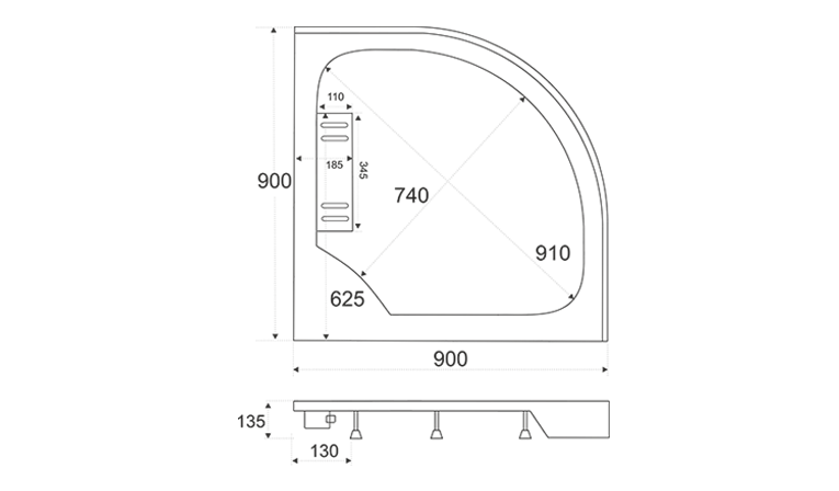 Акриловый поддон, усиленный листом влагостойкого ДСП. Может армироваться как полиэфирной смолой, так и безопасной, экологически чистой полиуретановой пеной высокой плотности, имеет 4 регулируемых ножки.