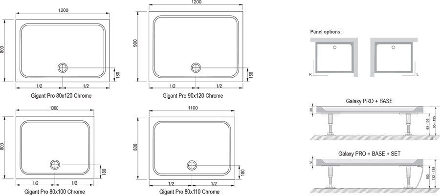 Прямоугольный душевой поддон Gigant Pro Chrome.