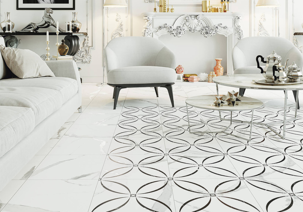 Благородный и мягкий мрамор калакатта коллекции Prima с мерцающим на свету рисунком всегда актуален и популярен в любых дизайнерских решениях, а утонченный орнамент в виде элегантных переплетенных линий подчеркнет достаток и роскошь интерьера.