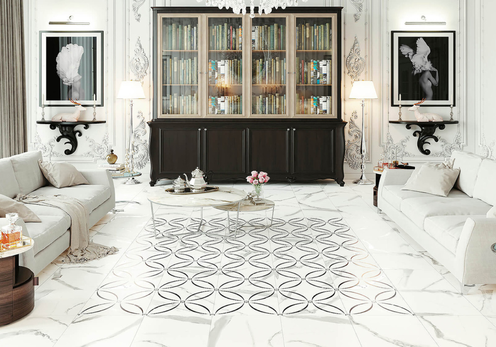 Благородный и мягкий мрамор калакатта коллекции Prima с мерцающим на свету рисунком всегда актуален и популярен в любых дизайнерских решениях, а утонченный орнамент в виде элегантных переплетенных линий подчеркнет достаток и роскошь интерьера.