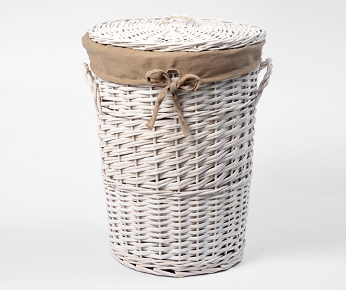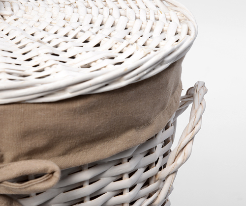 Характеристики: Водоотталкивающее покрытие Съемный хлопковый чехол Цвет: корзина - белый, чехол - бежевый Материалы: Прутья ивы