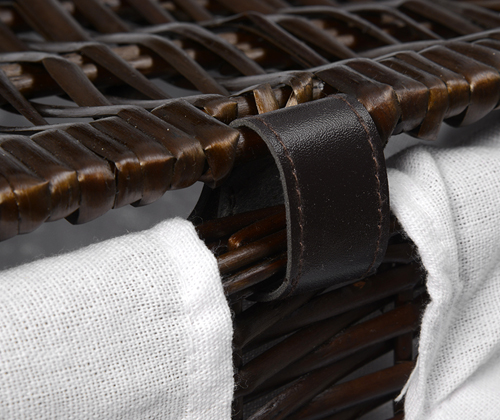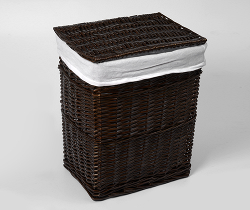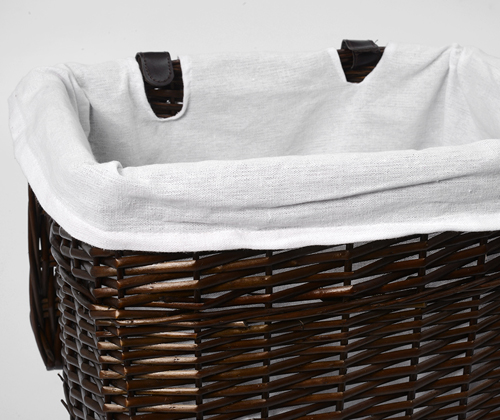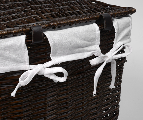 Характеристики: Водоотталкивающее покрытие Съемный чехол Цвет: корзина - темно-коричневый, чехол - белый Материалы: Прутья ивы, текстиль: 70% хлопок, 30% полиэстер
