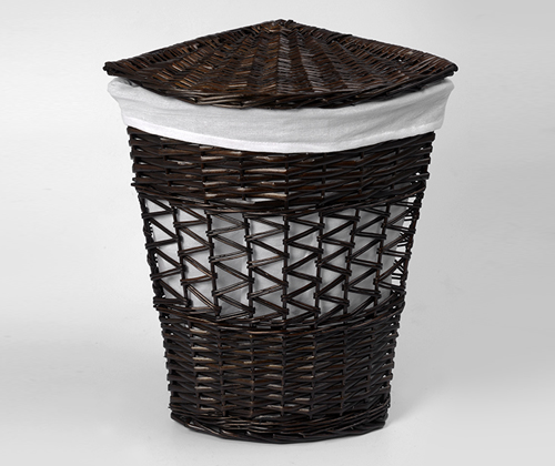 Характеристики: Водоотталкивающее покрытие Съемный чехол Цвет: корзина - темно-коричневый, чехол - белый Материалы: Прутья ивы, текстиль: 70% хлопок, 30% полиэстер