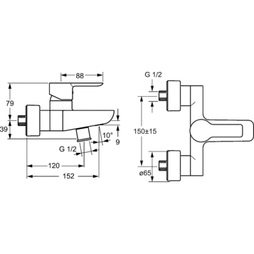 Межцентровое расстояние подключения: 150+15 мм
