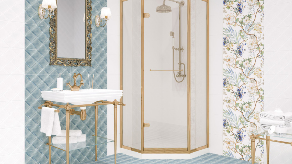 Толщина: 7,5мм Глянцевая поверхность имеет рисунок с цветами, с листьями. Эта плитка применяется для декорирования стен внутренних помещений: ванной, туалета.